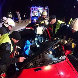 O wypadku poinformowała OSP KSRG w Chełmcach. Strażacy zadysponowani zostali do wypadku o godzinie 2:42. Jak przekazują jedna osoba została poszkodowana. Fot. OSP Chełmce.