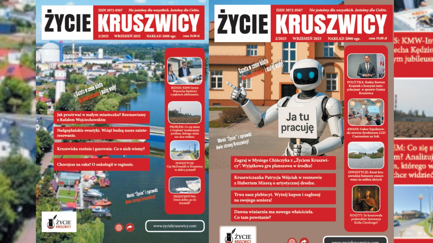 Nowy numer to także liczne wywiady - kontynujemy rozmowę z Magdaleną Grzegocką, kruszwiczanką, która odważyła się wydać własną książkę. Rozpoczęliśmy również cykl rozmów z Rafałem Wojciechowskiem pod niezwykle ciekawym tytułem "Jak przetrwać w małym miasteczku?". Z nowego numeru dowiecie się również dlaczego Kruszwicę odwiedził pewien obywatel Meksyku... i jaką pasję z powodzeniem realizuje Patrycja Wójcik z którą porozmawiał Hubert Mizera. W "Kryminalnej Kruszwicy" piszemy o łatwo dostępnym nad Gopłem krysztale... a chwilę wcześniej o kryzysie wodnym na Kujawach i używaniu przez Urząd Miejski w Kruszwicy popularnego ChatGPT.