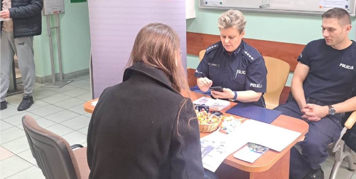 Asp. szt. Izabella Drobniecka i mł. asp. Emil Gawroński z inowrocławskiej komendy wystąpili w roli konsultantów do spraw bezpieczeństwa. Na sali obsługi klienta zostało zorganizowane specjalne stoisko, przy którym policjanci prowadzili rozmowy profilaktyczne, informując o zagrożeniach związanych z oszustwami, podszywaniem się pod członka rodziny, policjanta pracownika banku, czy właśnie ZUS-u.