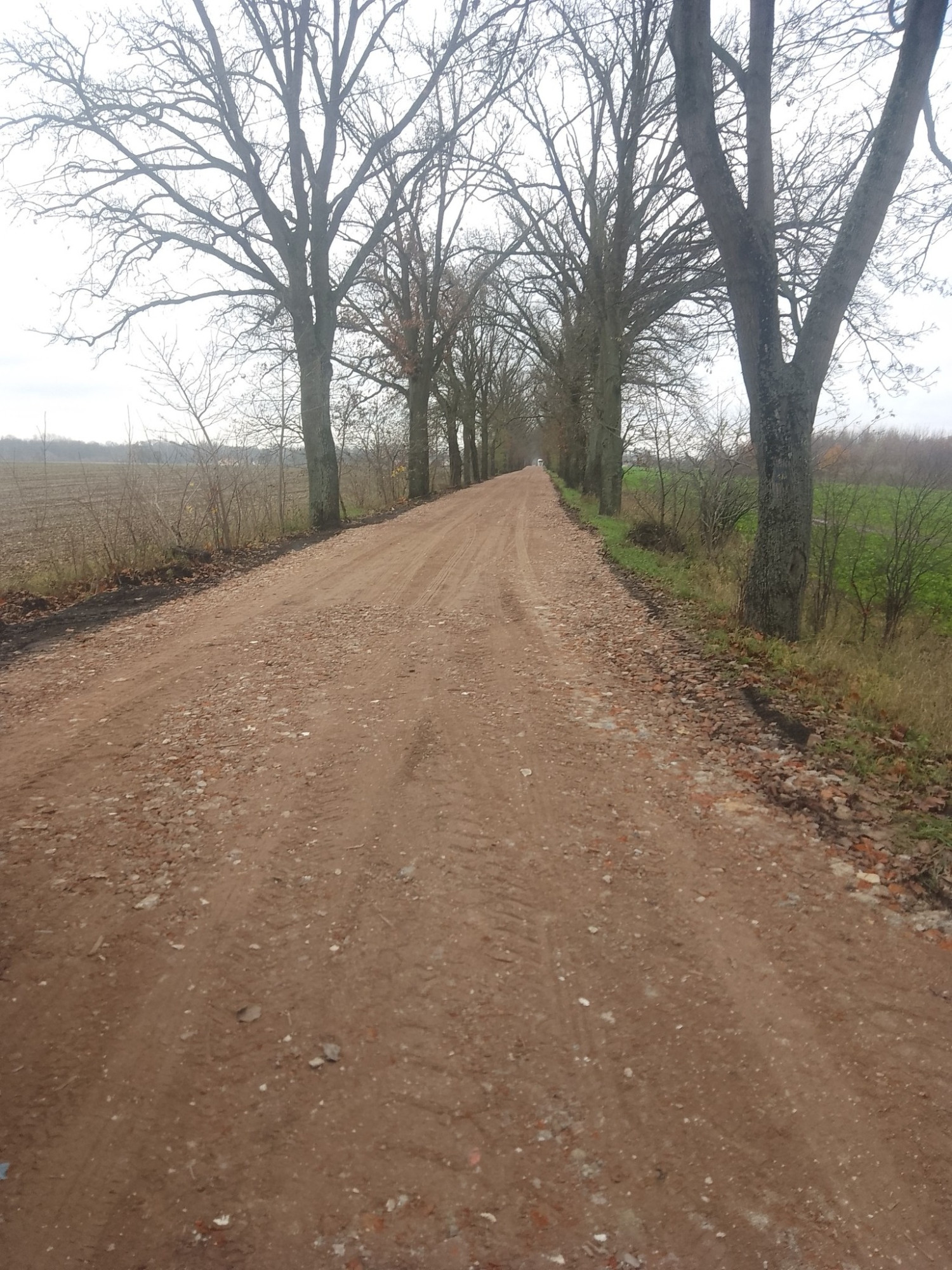 Zakres prac obejmował zebranie pobocza, wyrównanie podłoża oraz ułożenie geowłókniny i kruszywa drogowego. Celem robót było poprawienie stanu technicznego nawierzchni oraz zwiększenie bezpieczeństwa osób korzystających z drogi.