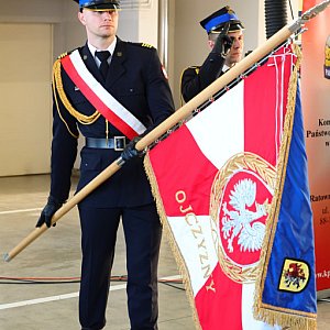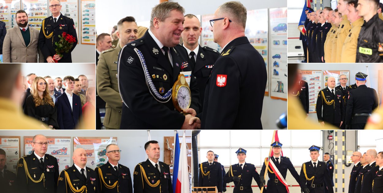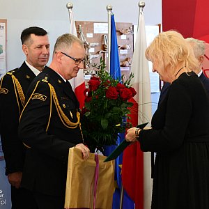 Podczas uroczystości starosta Wiesława Pawłowska podziękowała odchodzącemu komendantowi za wieloletnią współpracę oraz zaangażowanie w sprawy bezpieczeństwa przeciwpożarowego na terenie powiatu. Wskazała na jego rolę w organizacji pracy jednostki oraz w działaniach na rzecz poprawy ochrony przeciwpożarowej.