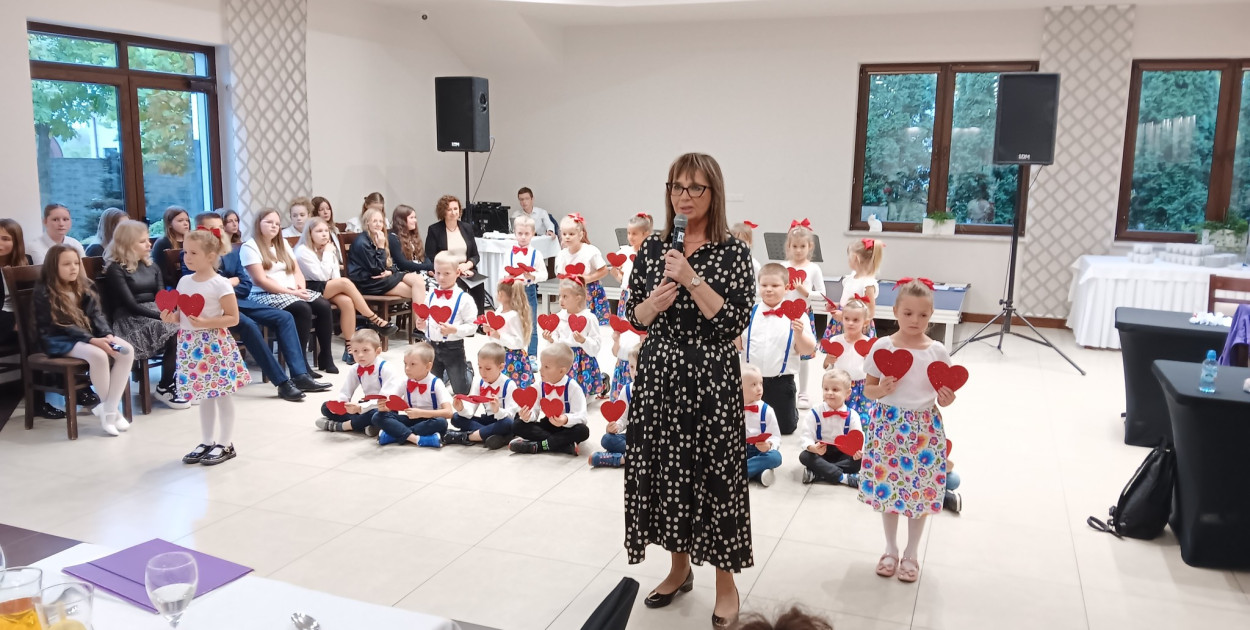 W wydarzeniu uczestniczyli także emerytowani pracownicy placówki. Program artystyczny obejmował występ grupy „Biedronki” z przedszkola, humorystyczny skecz Samorządu Uczniowskiego oraz występ chóru szkolnego, który przygotował muzyczny upominek dla zgromadzonych gości.