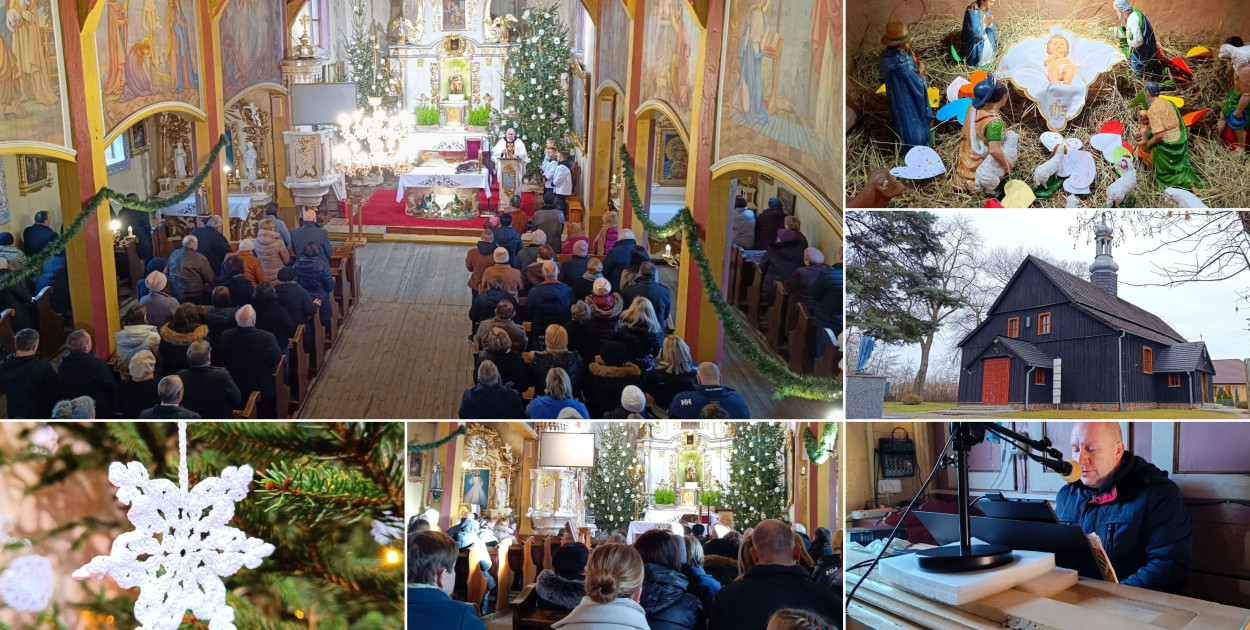 Kościół, w którym odprawiono nabożeństwo, został zbudowany w 1766 roku. Jak co roku, świątynię zdobią choinki przystrojone ponad setką ręcznie wykonanych bombek i ozdób.