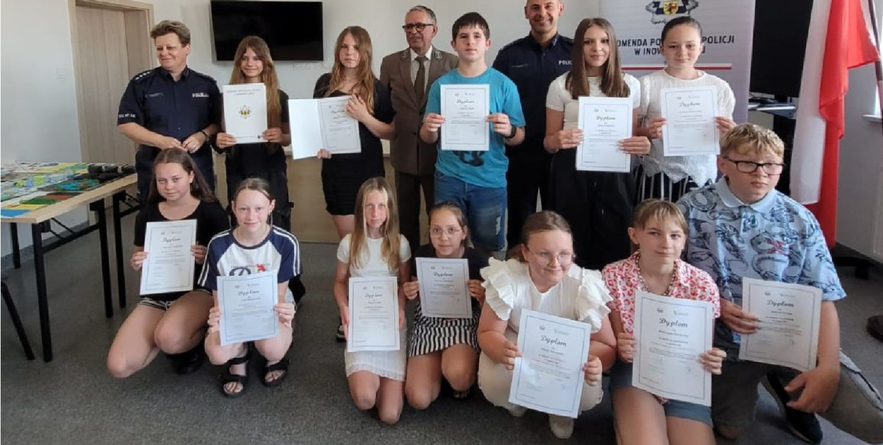 Do Komendy Powiatowej Policji w Inowrocławiu została zaproszona młodzież, wraz z rodzicami, która wzięła udział w konkursie. Inicjatorami konkursu byli policjanci asp. szt. Izabella Drobniecka i mł. asp. Emil Gawroński oraz edukatorka Nadgoplańskiego Parku Tysiąclecia w Kruszwicy Pani Lucyna Graczyk.