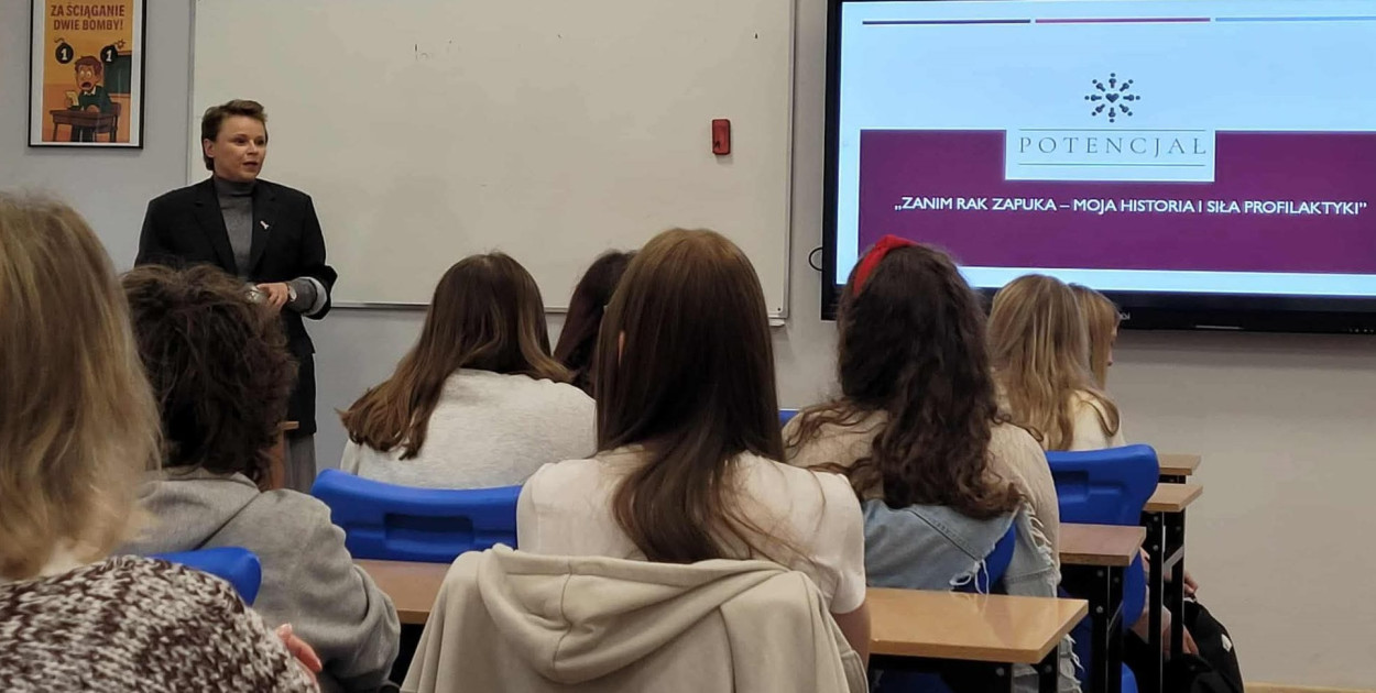 Podczas wydarzenia prelegentka podzieliła się swoim doświadczeniem związanym z chorobą nowotworową, zwracając uwagę na znaczenie badań profilaktycznych oraz wczesnego wykrywania raka piersi. Uczniowie mieli okazję wysłuchać osobistej relacji dotyczącej walki z chorobą oraz znaczenia wsparcia i pozytywnego nastawienia w procesie leczenia.