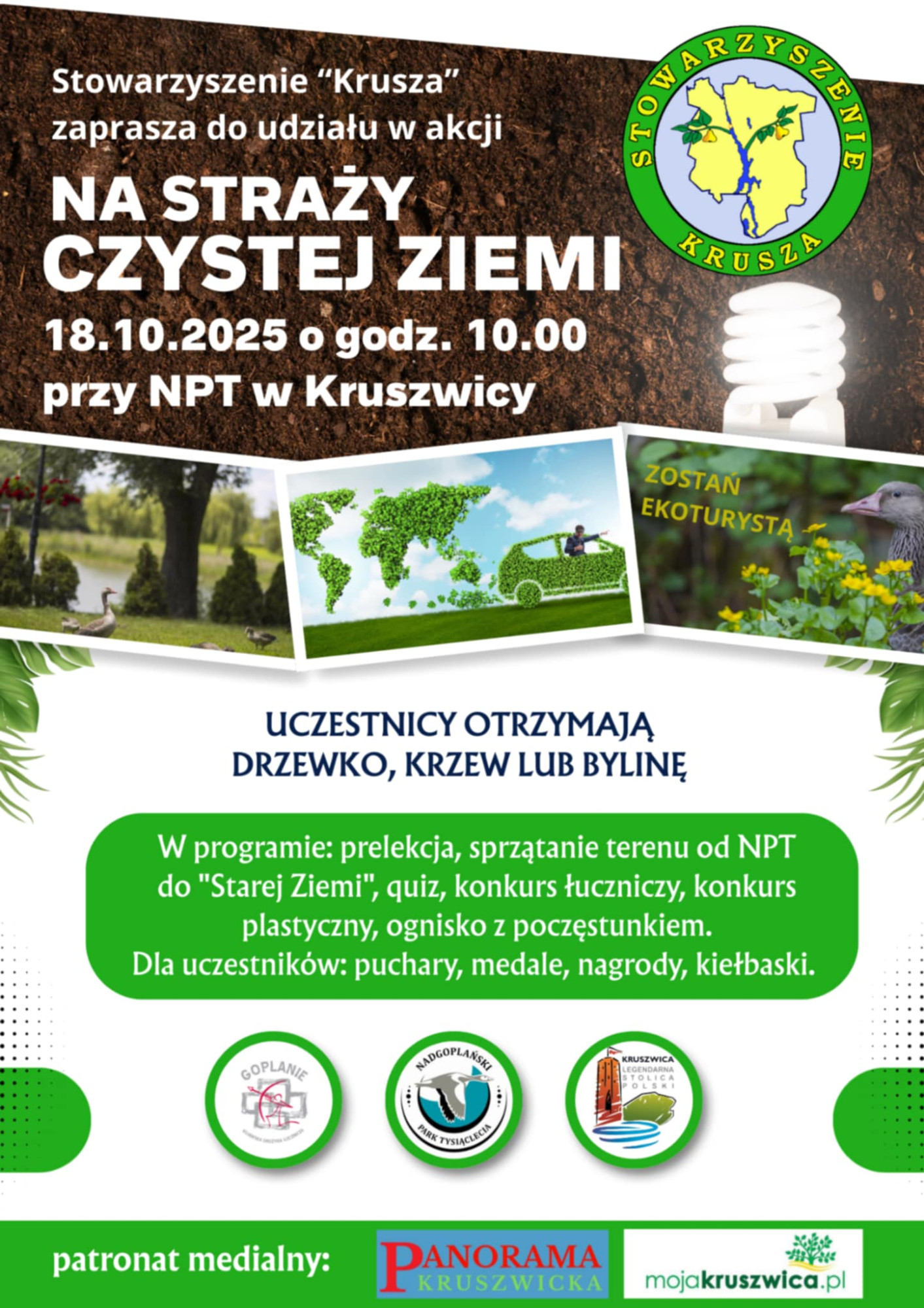 18 października 2025 roku o godzinie 10:00 w Kruszwicy odbędzie się akcja ekologiczna „Na straży czystej Ziemi – zostań ekoturystą”. Wydarzenie ma na celu promowanie postaw proekologicznych oraz dbałości o czystość i estetykę miasta.