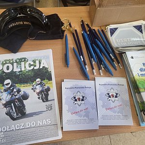 Inowrocławscy policjanci prowadzili z uczniami rozmowy o tym, jakie zagrożenia pojawiają się na drodze i jak można ich unikać. Z uwagi na to, że niebawem wielu uczniów będzie starało się o prawo jazdy, nie mogło zabraknąć informacji o nietrzeźwych kierowcach, którzy są sprawcami kolizji i wypadków drogowych. Stąd pokaz sprzętu jakim posługuje się „drogówka”, zajęcia w promilgoglach, spoty i filmy, a także wskazanie celu ogólnopolskiej kampanii „Mistrzu Zwolnij”. Policjanci także informowali o zasadach naboru do służby i jego etapach.