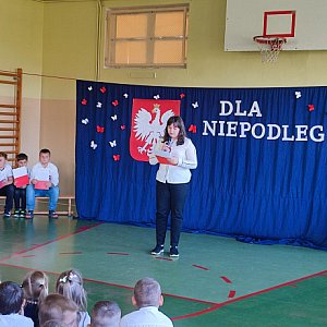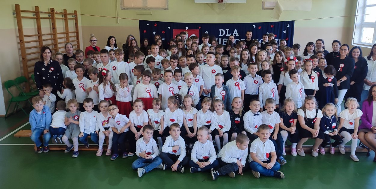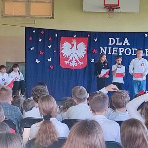 O godzinie 11.11 cała społeczność szkolna wzięła udział w ogólnopolskiej akcji "Szkoła do hymnu" wspólnie śpiewając "Mazurka Dąbrowskiego". W dalszej części uroczystości uczniowie klasy piątej zaprezentowali część słowną, przypominającą najważniejsze wydarzenia z historii naszej ojczyzny. Przedstawili również interpretację tego pojęcia przez różne osoby.