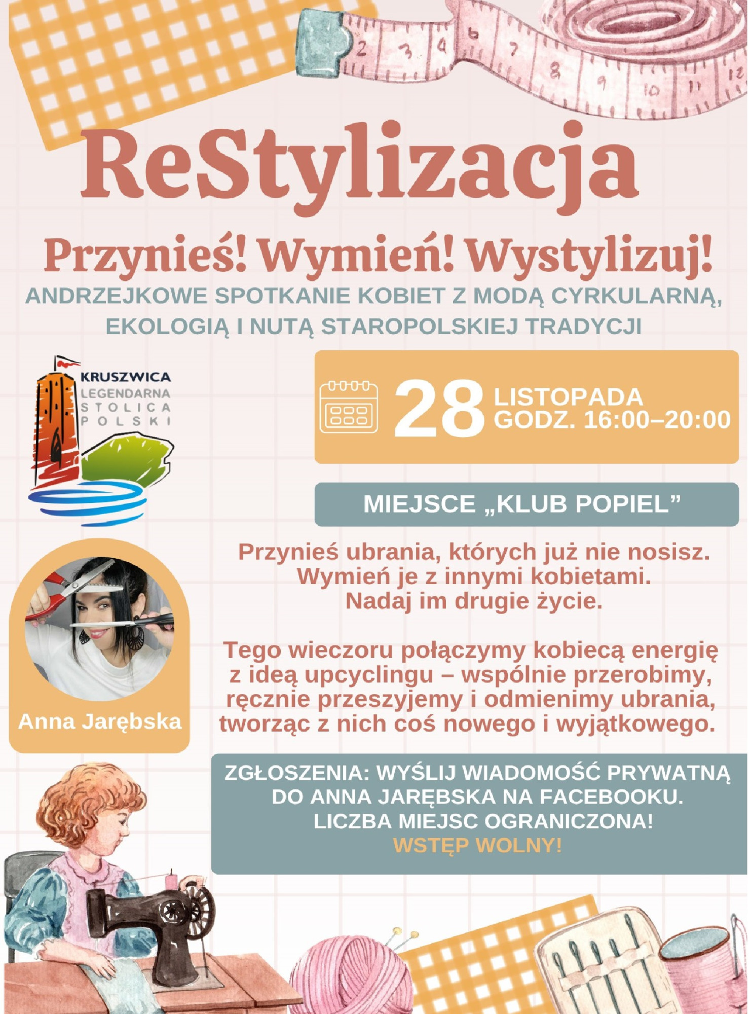 Uczestniczki będą mogły przynieść nieużywane ubrania, wymienić je między sobą oraz wziąć udział w warsztatach ręcznego przerabiania i stylizowania odzieży. W programie przewidziano również elementy tradycyjnego andrzejkowego wieczoru – wróżby, przelewanie wosku oraz poczęstunek obejmujący kawę, herbatę i słodkie przekąski. Wydarzenie zaplanowano w godzinach 16.00–20.00. Udział jest bezpłatny, jednak liczba miejsc jest ograniczona.