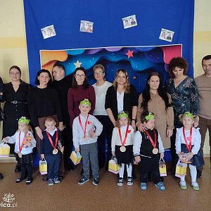Na zakończenie uroczystości wręczono medale i drobne upominki. Dzieci z uśmiechem odebrały gratulacje, a wydarzenie stało się ważnym momentem w ich pierwszych szkolnych doświadczeniach.