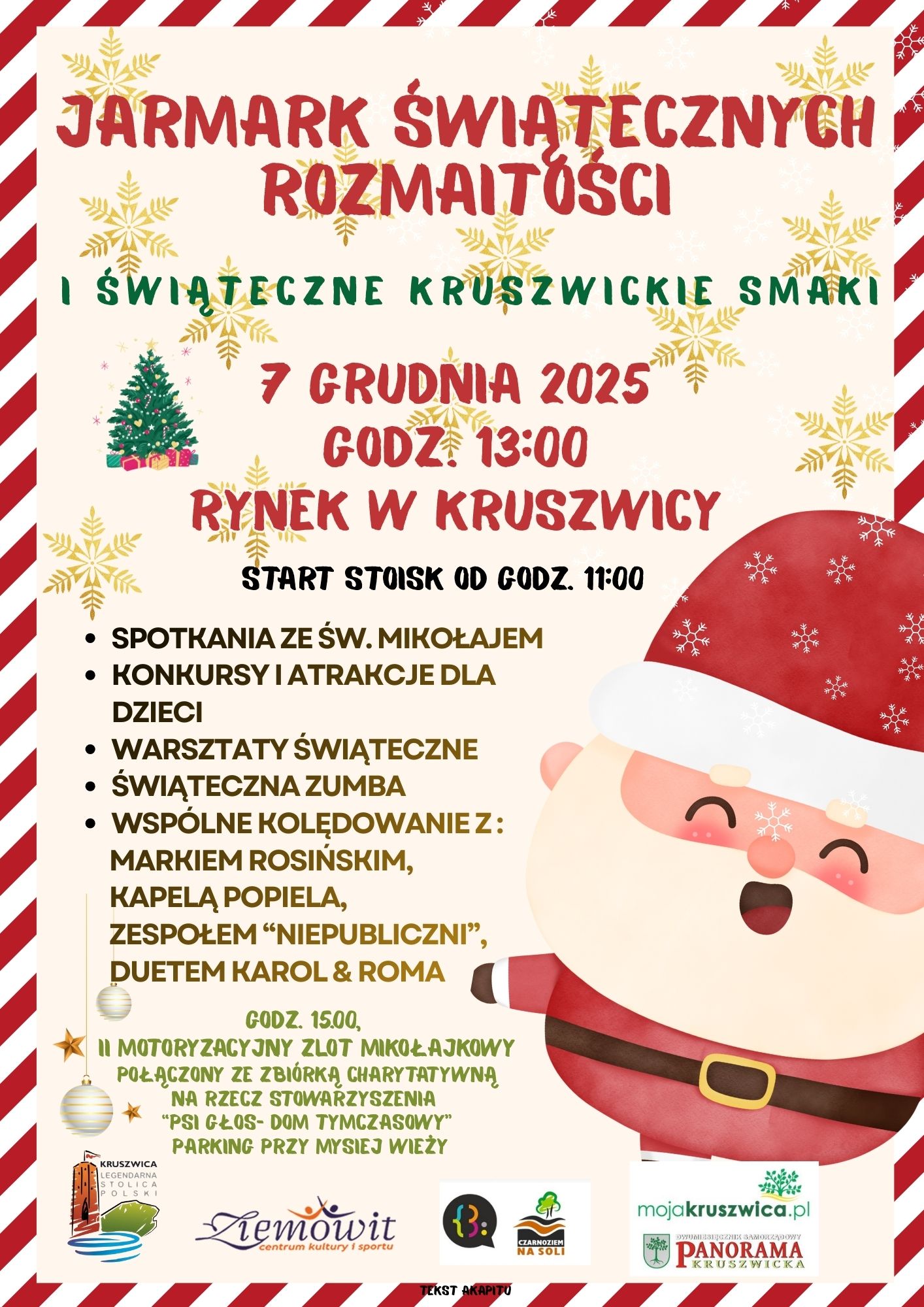 7 grudnia 2025 roku na rynku w Kruszwicy zaplanowano organizację Jarmarku Świątecznych Rozmaitości oraz wydarzenia „Świąteczne Kruszwickie Smaki”. Impreza rozpocznie się o godzinie 11:00. Na stoiskach pojawią się lokalne wyroby, produkty świąteczne oraz artykuły rzemieślnicze.