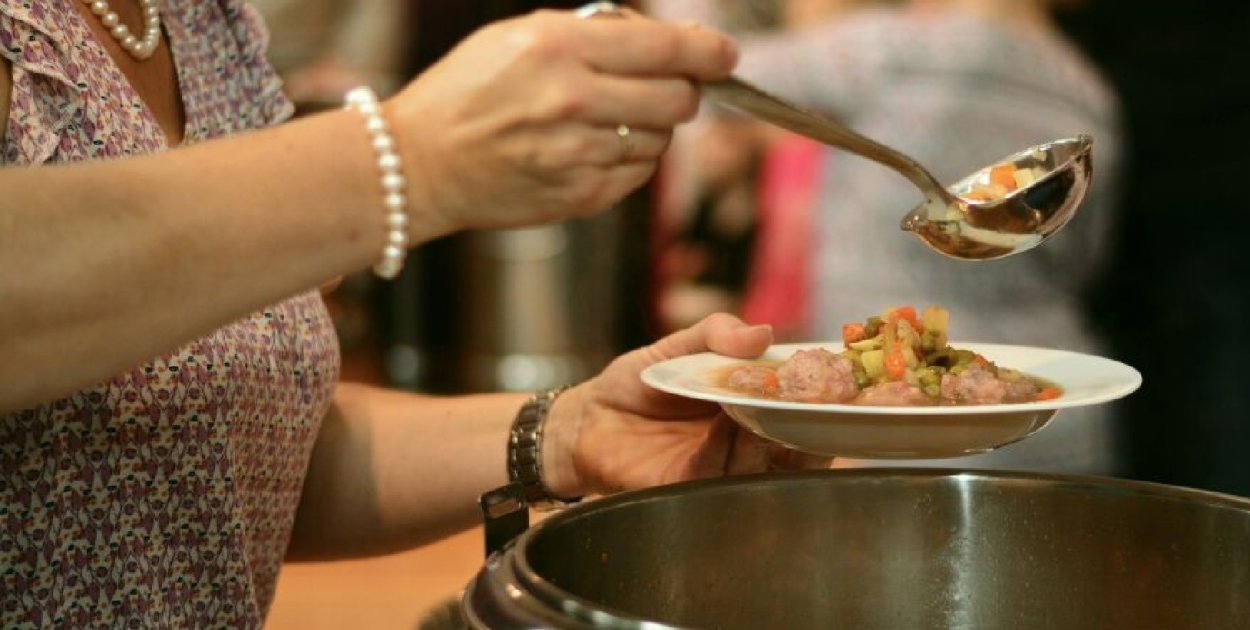 Posiłki wydawane były w dwóch turach. W trakcie wydarzenia wolontariusze zapraszali osoby potrzebujące do skorzystania z przygotowanego poczęstunku. Część mieszkańców przyniosła własne produkty żywnościowe, które mogły zostać od razu rozdysponowane.