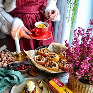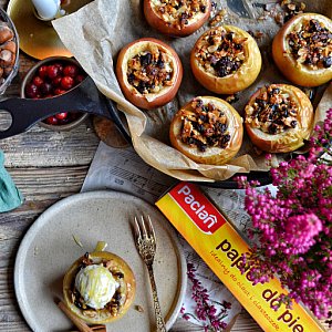 – Najlepiej przykrywać deser folią tylko na pierwsze 30 minut pieczenia. Dzięki temu jabłka będą bardziej soczyste i przejmą aromat nadzienia. Pod koniec warto folię zdjąć – wtedy owoce pięknie się zarumienią, a cukry na ich powierzchni delikatnie skarmelizują. To prosty trik, który sprawia, że deser nie tylko lepiej smakuje, ale też wygląda bardziej apetycznie – podpowiada Marta Krokowicz, ekspertka marki Paclan.