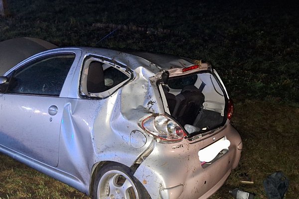 08.09.2025 Trzy osoby w szpitalu po dachowaniu audi
