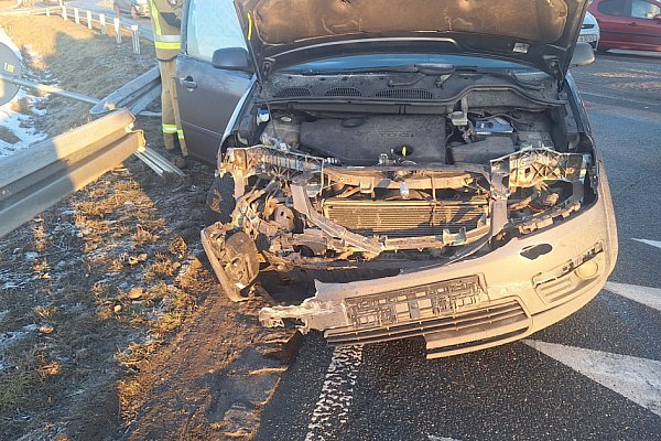 23.01.2026 Kobylniki: Samochód osobowy uderzył w bariery ochronne