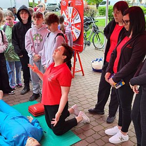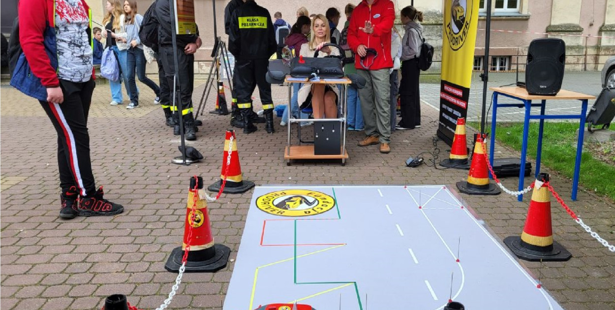 Dziś (12.04.24) wiele atrakcji czekało na tych, którzy odwiedzili Medyczno-Społeczne Centrum Kształcenia Zawodowego I Ustawicznego w Inowrocławiu przy ul. Narutowicza 53. To za sprawą wydarzenia, które promowało bezpieczeństwo na drodze.