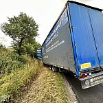 Po przybyciu na miejsce zdarzenia zastano dwa samochody ciężarowe wraz z naczepami po wcześniejszym zderzeniu. Jedno z samochodów znajdowało się w przydrożnym rowie, natomiast naczepa blokowała drogę powiatową. W aucie znajdowała się jedna osoba - kierowca - który był zakleszczony w kabinie. Drugim samochodem, który znajdował się na poboczu, podróżowała jedna osoba, która w chwili przybycia służb była poza pojazdem bez obrażeń.