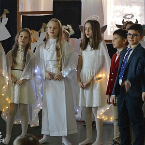 Młodzi artyści zaprezentowali historię narodzin Jezusa, wcielając się w postacie Maryi, Józefa, aniołów, pasterzy i Trzech Króli. Przedstawienie wzbogacone było recytacją, śpiewem kolęd oraz tańcami, które podkreśliły wyjątkowy charakter wydarzenia. Występ uczniów spotkał się z dużym uznaniem publiczności i został nagrodzony gromkimi brawami.