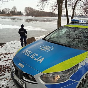 Policjanci z komisariatu w Kruszwicy patrolują teren nad jeziorem Gopło. To pod kątem bezpieczeństwa, by ludzie nie próbowali wchodzić na lód.