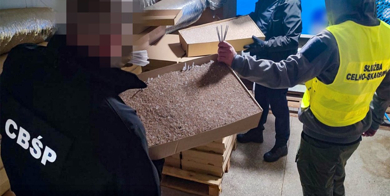 Zabezpieczona infrastruktura obejmowała m.in. maszynę pakującą, maszynę do cięcia tytoniu, suszarnię tytoniu, dwa przemysłowe agregaty prądotwórcze oraz znaczne ilości komponentów produkcyjnych, takich jak filtry, opakowania, taśmy i folie.