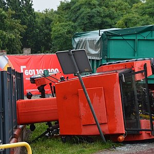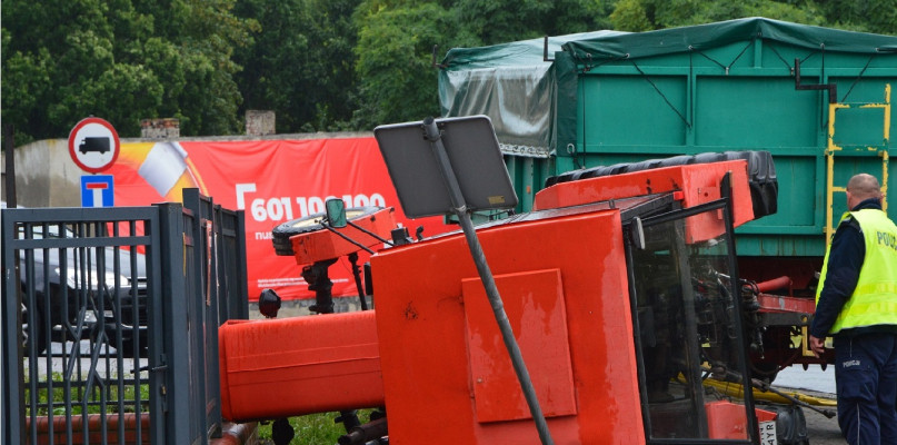 Poprostu nie miał podpiętych hamulców od przyczepy a jak sam straktor zahamował i go przewróciło.