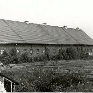 Z dokumentacji opracowanej przez Jerzego Nowińskiego (stan na 1989 r.) wynika, że budynek wzniesiono około 1920 r., po I wojnie światowej, na zlecenie ówczesnej administratorki majątku Elisabeth Busse. Autor projektu nie jest znany. Prace budowlane wykonała grupa murarska Kolczyńskiego z Kruszwicy. Obiekt zaprojektowano jako stajnię dla koni roboczych i wyjazdowych (części wschodnia i zachodnia) oraz oborę dla bydła opasowego (część centralna). Poddasze wykorzystano na magazyn suchych pasz objętościowych: siana i łodyg grochu.