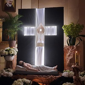 Wielki Piątek to czas kiedy w kościele katolickim nie sprawuje się mszy św. Celebrowana jest jednak Liturgia Męki Pańskiej, w czasie której odczytuje się opis męki Pańskiej według Ewangelii św. Jana i trwa adoracja krzyża. W tym roku, w modlitwie powszechnej, Kościół modlił się za naród Ukraiński.