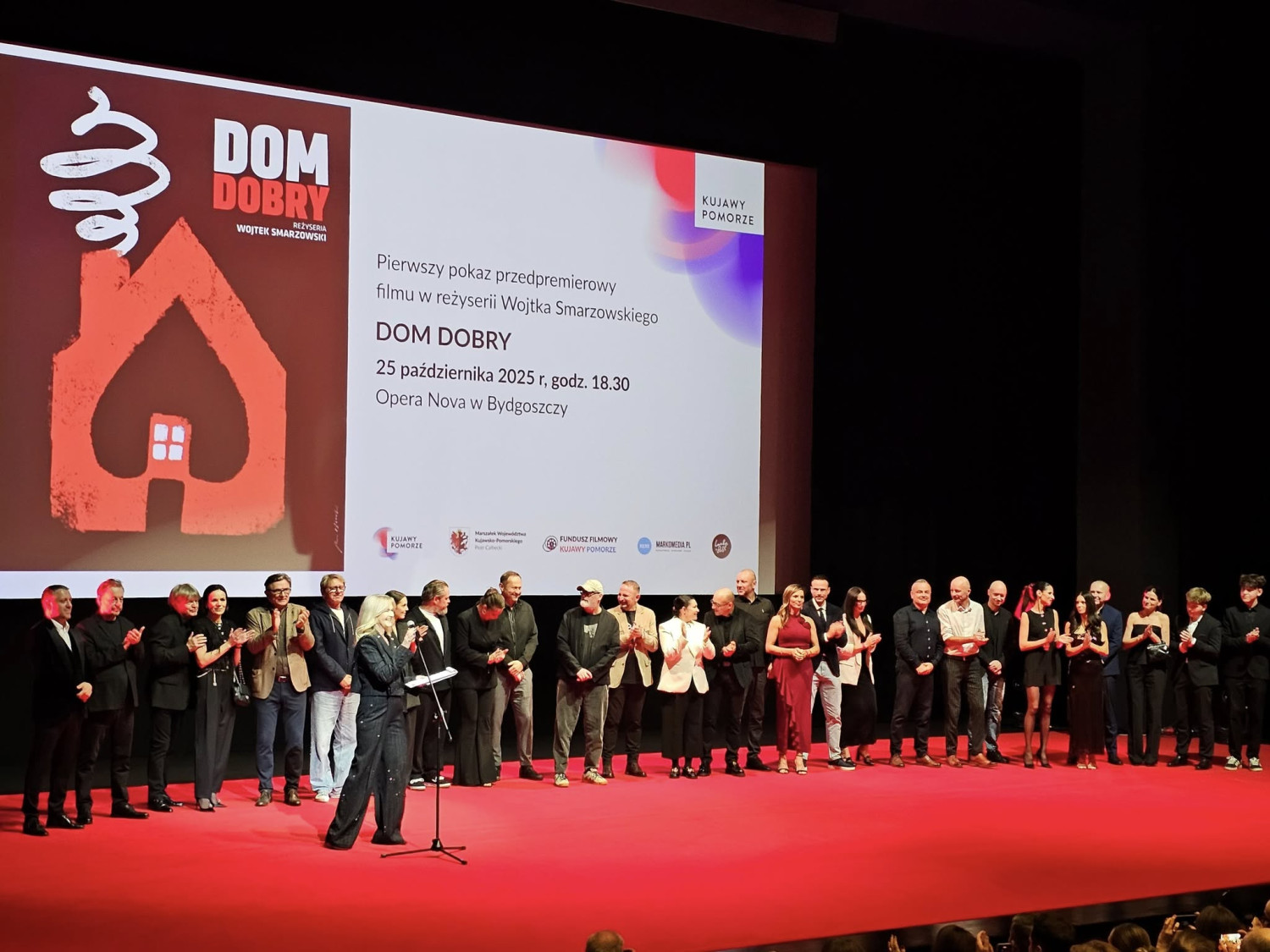 1. Pierwszy prapremierowy pokaz filmu „Dom dobry” w bydgoskiej Operze Nova. Z przodu – Wojtek Smarzowski. Od lewej – producent Wojciech Gostomczyk, aktor Andrzej Konopka, aktorka Anna Szymańczyk, Marcin Kowalski, główni aktorzy w „Domu dobrym” – Tomasz Schuchardt i Agata Turkot, producent Janusz Hetman, dziennikarka Grażyna Torbicka.